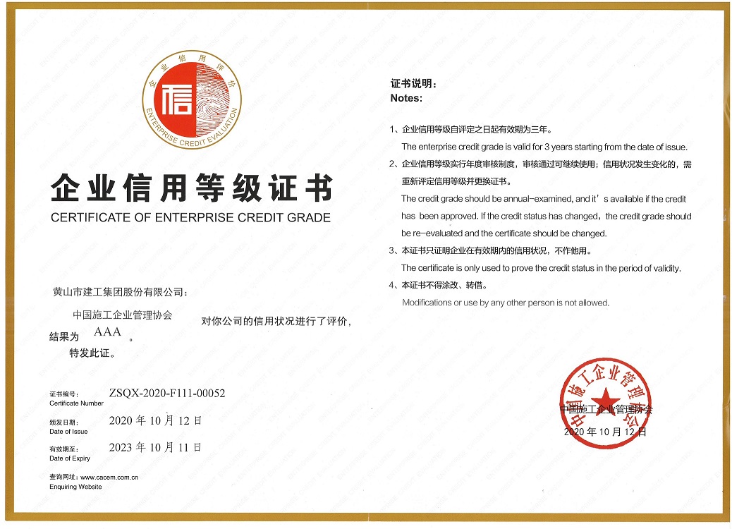 榮譽(yù)的獲得,是對(duì)黃山建工集團(tuán)近年來信用體系建設(shè)工作的充分肯定,公司將進(jìn)一步規(guī)范管理,增強(qiáng)誠信意識(shí),守信踐諾,為工程建設(shè)行業(yè)的持續(xù)健康發(fā)展做出新貢獻(xiàn)。