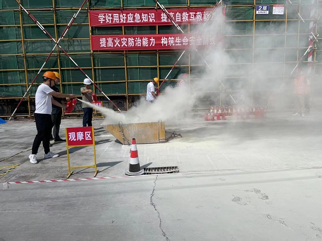 2023年6月是全國第22個“安全生產月”,為深入貫徹落實習近平總書記關于安全生產重要論述,嚴格落實集團公司關于安全生產各項規定,進一步強化公司整體消防應急救援綜合能力。6月8日下午,集團公司在齊云府六期項目開展“人人講安全、個個會應急”消防安全應急演練活動。項目安全員開展消防器材的使用、撲救初起火災疏散逃生等消防安全常識的培訓。以通俗易懂的方式,深刻警示全體員工要提高對消防安全的重視。