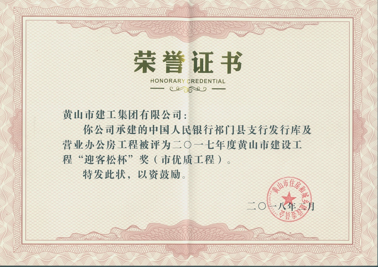 2018年度黃山市建設工程優質工程獎
