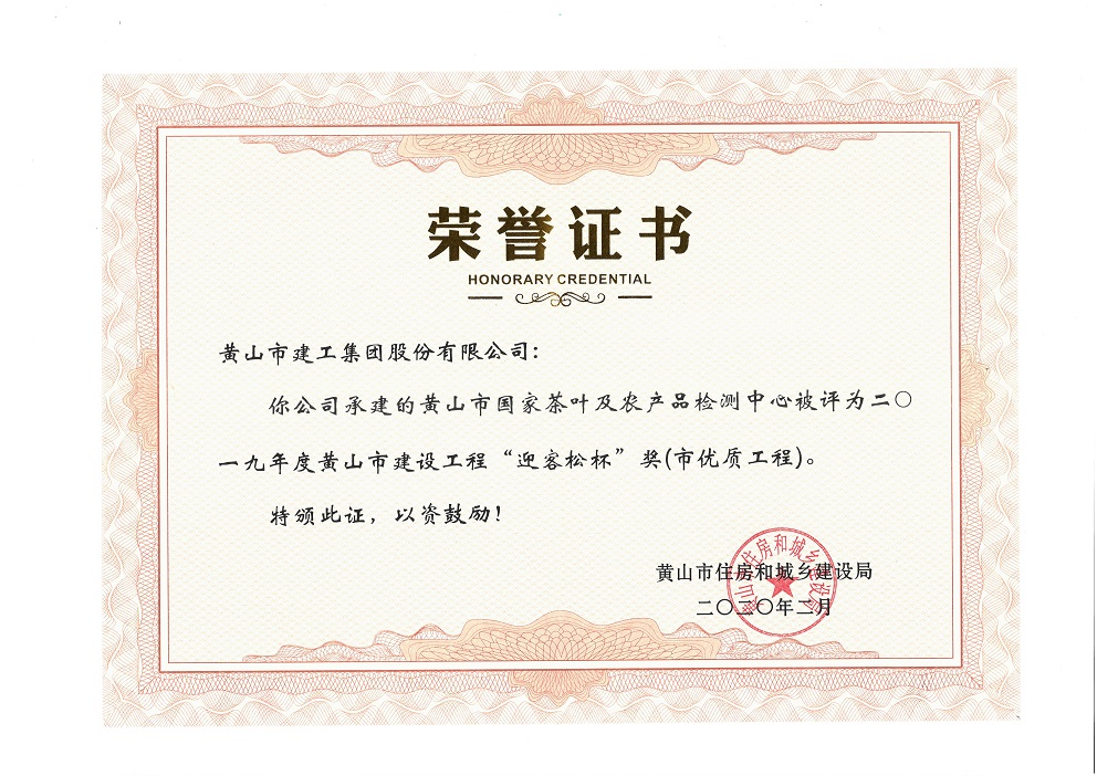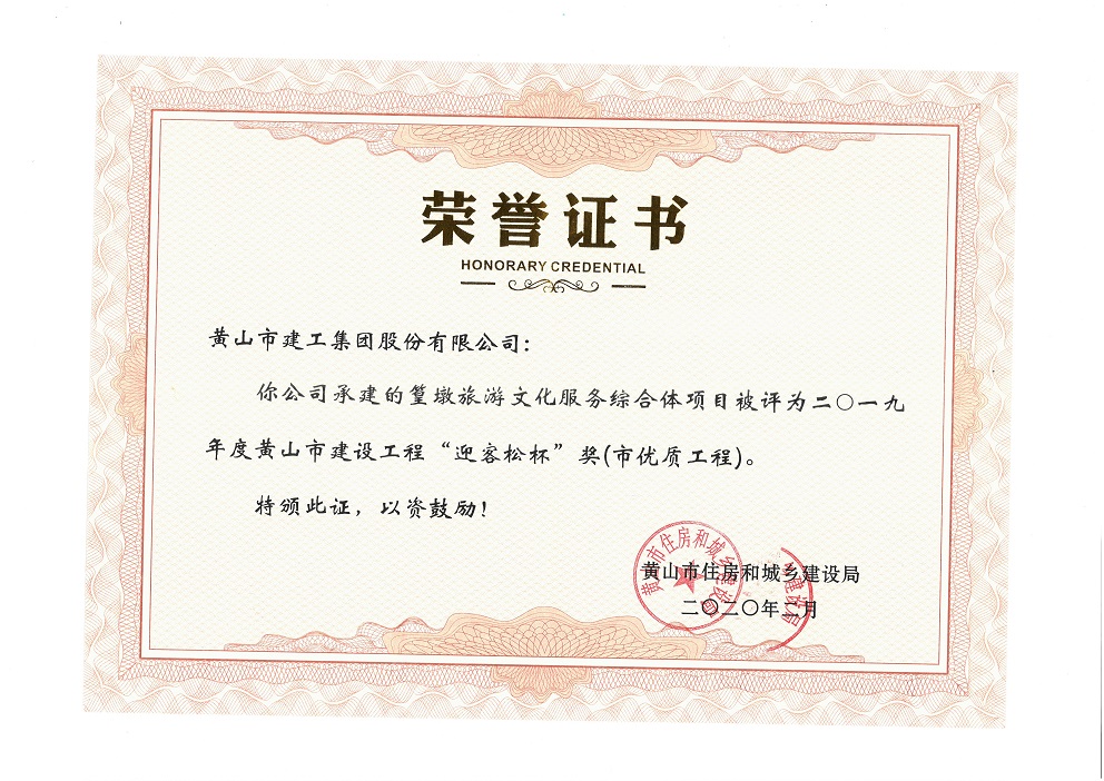2020年度黃山市建設工程優質工程獎